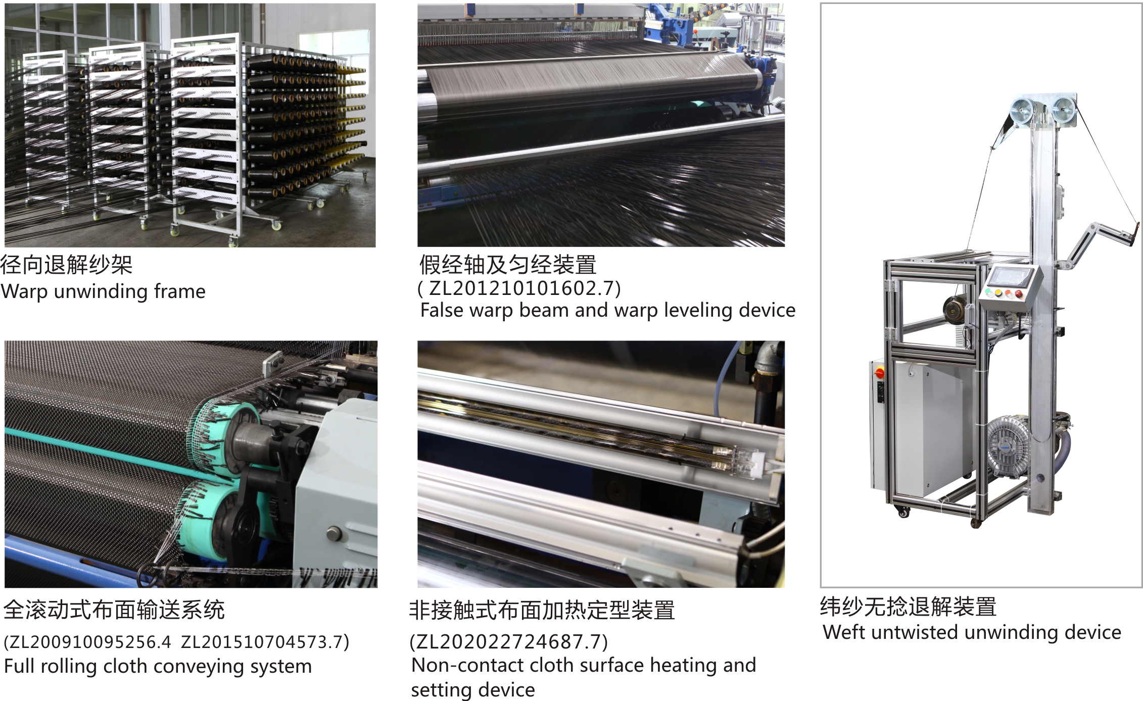 WL600 carbon fiber rapier loom is a professional weaving machine for carbon fibercloth. lt can weave square cloth, luggage cloth, etc. with carbon fiber in the warp and weftdirections, and can also weave carbon fiber sheets with carbon fiber in the radial directionand thermal use in the weft direction. Directional fabric, which integrates carbon fiber weftand weaving, weaving, heat setting, and roll forming.Main technical requirements: